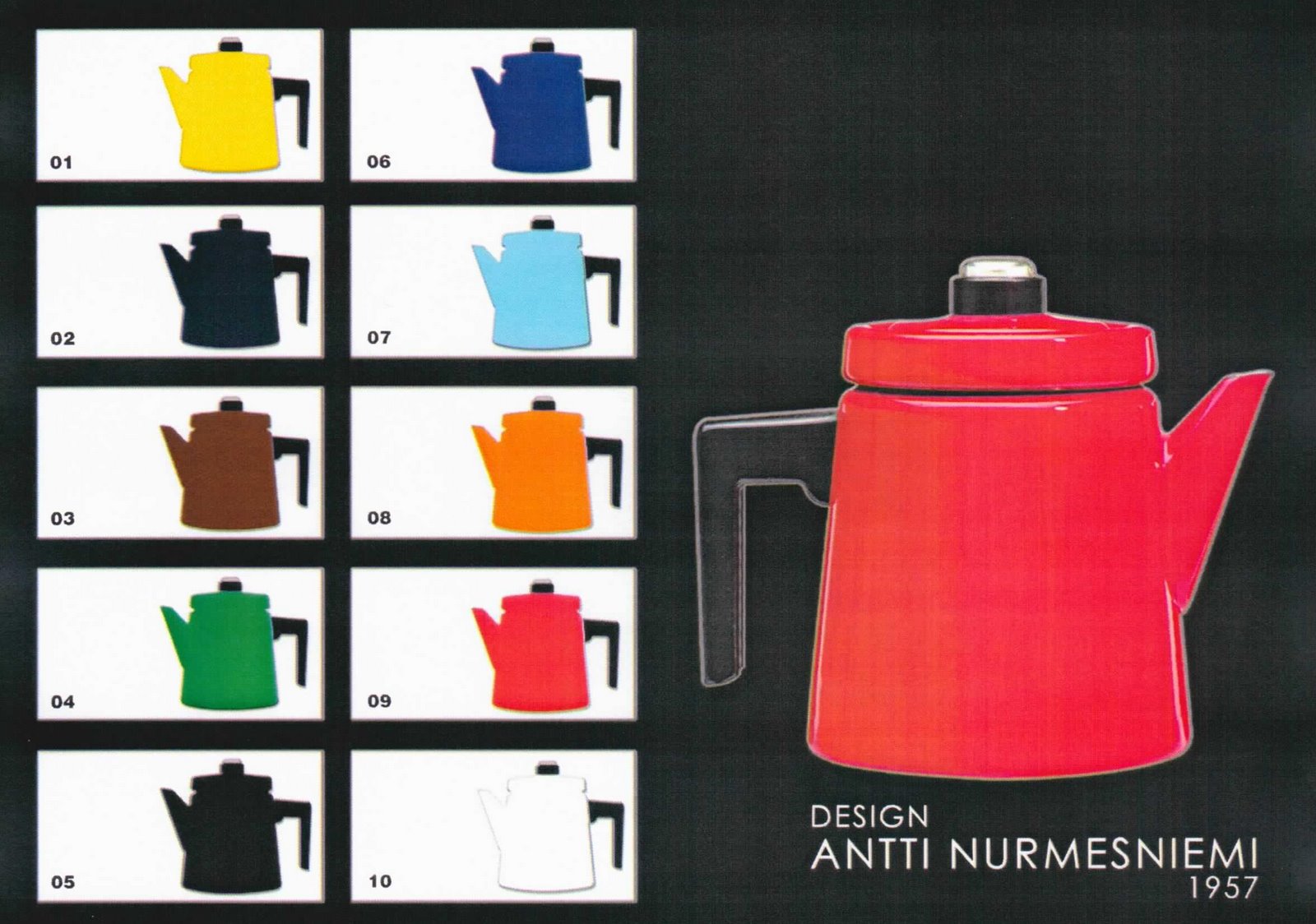 Nurmesniemi was contacted by Wärtsilä, a engine maker and former owner of among others Arabia, to create a new product for the factories in Pietarsaari in Ostrobotnia, Finland as orders were at a low at the plant. The pot became a huge success and was manufactured well into the 1970’s. Nurmesniemi himself said this about it: “it is one of few household products of its time that bridged the increasing gap between city and countryside”