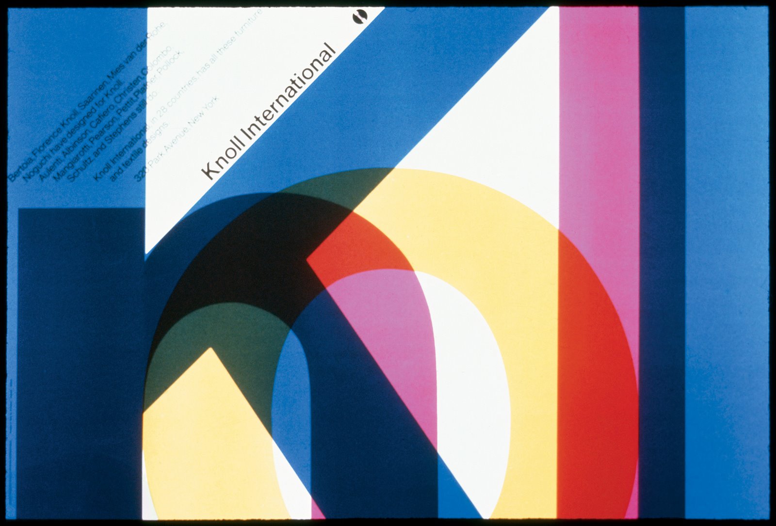 The name Knoll is imaginatively spelled out by combining colors and letters on top of each other.
