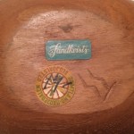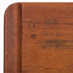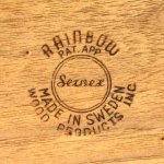 Karl Holmberg in Götene would in time become Scandinavia’s largest company making teak objects and had close to 100 employees by the mid 1960s. Teak however quickly feel out of fashion in the end of the 1960s and even trials with stained wooden items were made. The company couldn’t adapt and went bankrupt in 1973. Items by Karl Holmberg in Götene are recognized by a burned stamp or sticker.