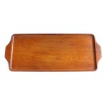 I haven’t been able to find out how the company ventured into making teak trays but teak trays they made. It seems that they also worked with the Finnish company Backman on figure sawed trays.