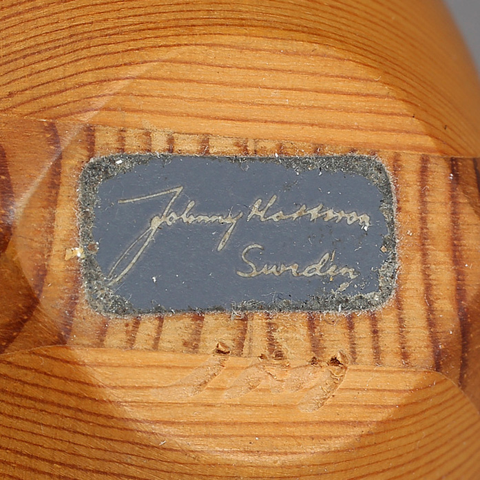His father also worked with wood in his spare time and in the fall of 1941, Johnny started Gävleslöjd, där he made candle sticks, table lamps and trays – simple home items made by hand. In 1945 he started working with sculptures, at first depicting birds and boats. In 1947, he saw a ‘beer goose’ (a wooden 19th century goblet with an upreaching handle) at the Gävle museum and made one himself – although a more slim and delicate version.