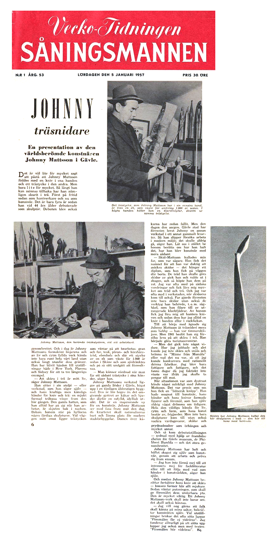 After Humbla’s visit, Johnny Mattsson exhibited at the Gävle museum in May 1952 to great reviews. This was Johnny Mattsson’s breakthrough. The exhibition was followed by another one at Nordiska kompaniet in Stockholm.