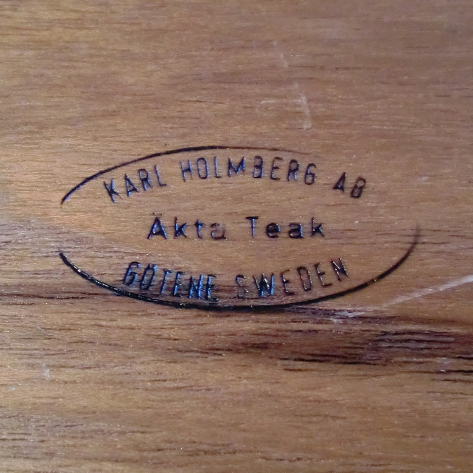 Objects are marked Karl Holmberg AB Äkta Teak Götene Sweden.