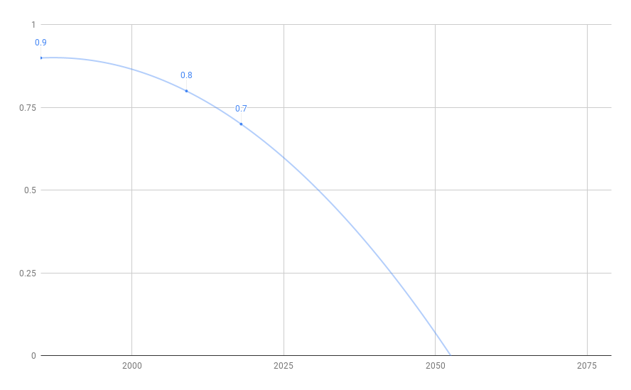 The final congregant will, by the looks of it, turn off the church lights sometime around 2052. Probably even sooner.